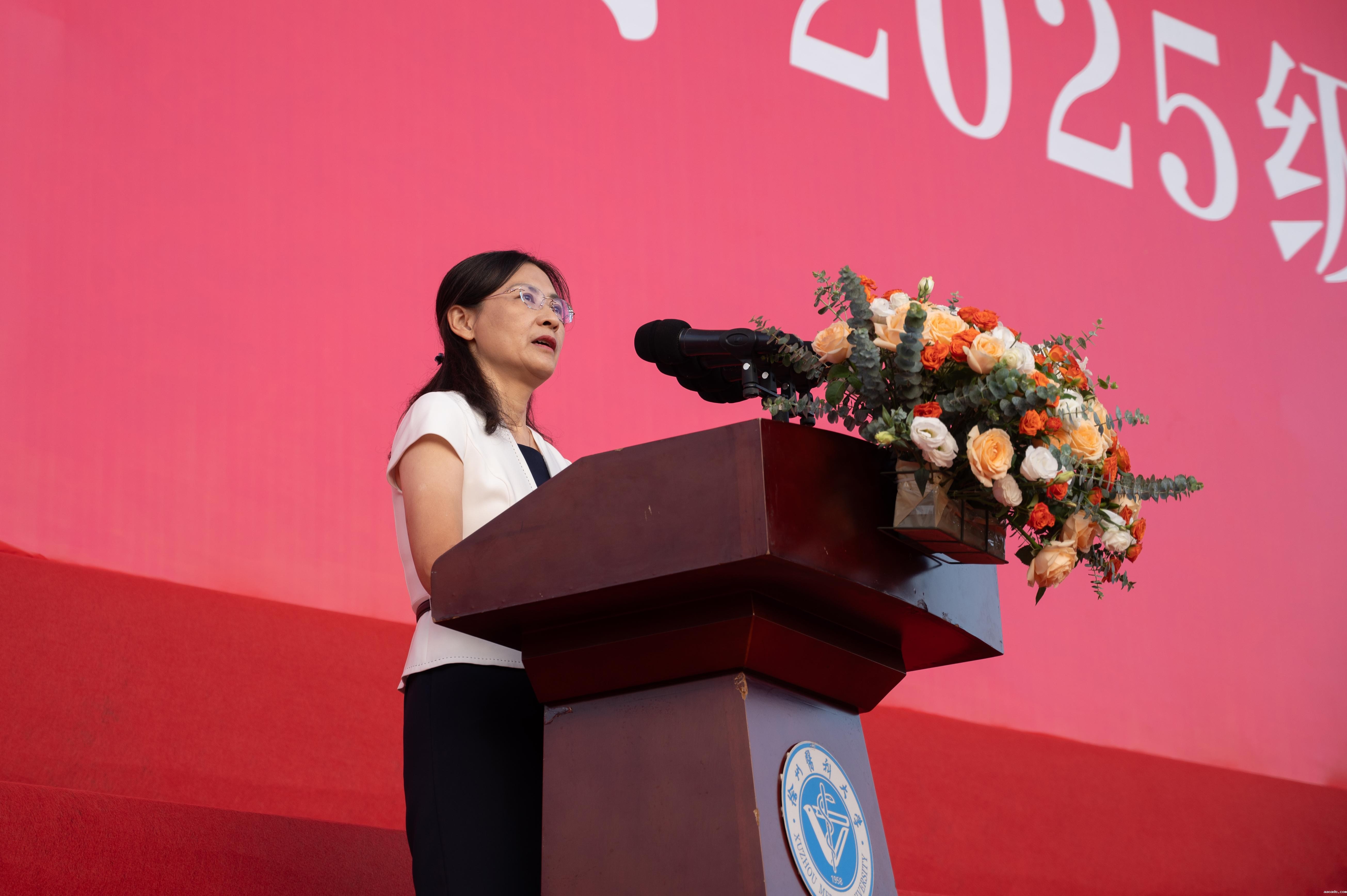 校党委书记祝木伟代表学校对全体新生表示热烈的欢迎和诚挚的祝福,并以“以德载医 在新征程中铸就大医精诚”为题,为2025级新生讲授“开学第一课”。他围绕“新时代徐医要培养什么样的医学人才”,从“明大德、守公德、严私德”三个维度,结合学校办学历史与身边的先进典型,领航新生开启新的人生篇章。