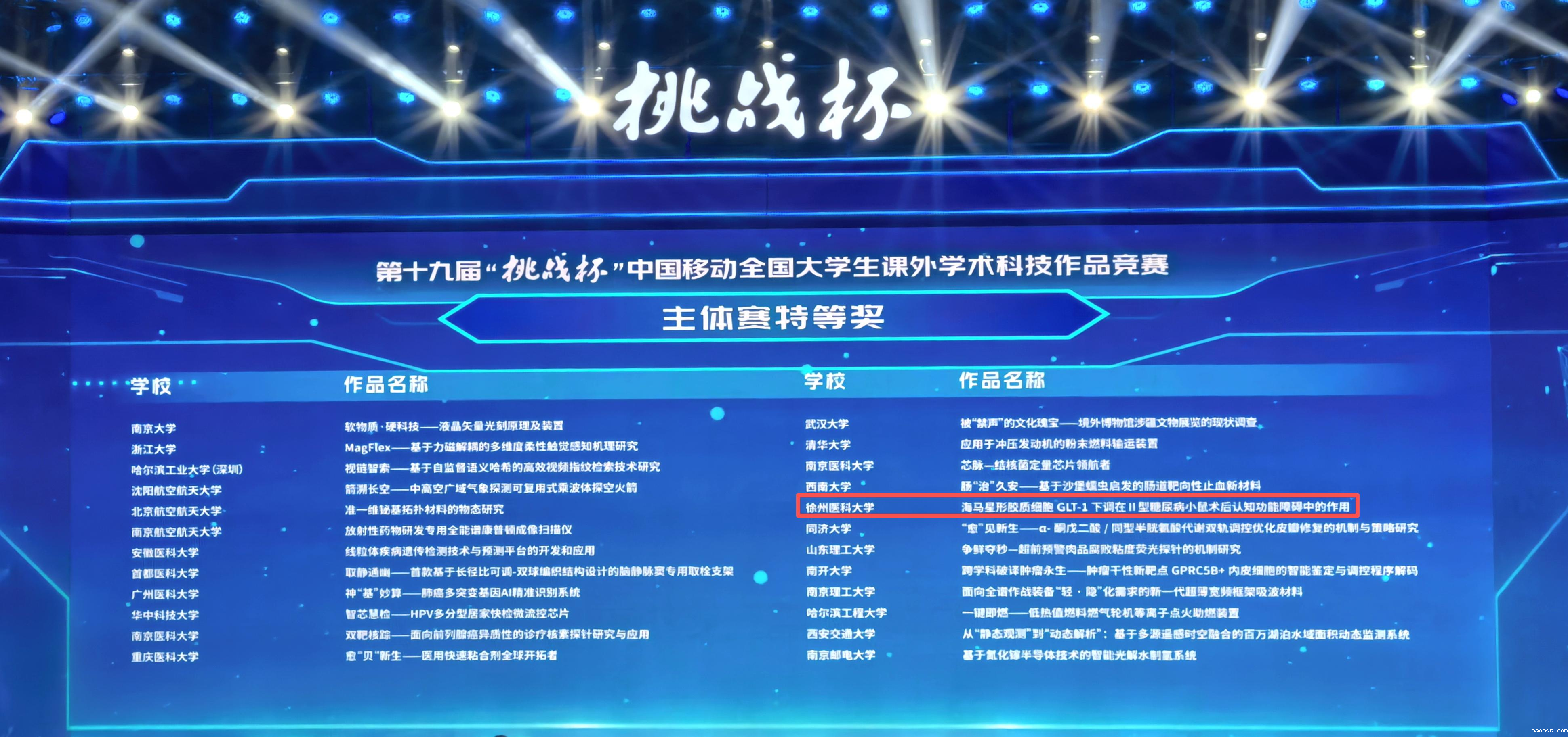 学校高度重视大赛的组织管理工作,自去年10月“卓越杯”校赛启动以来,校领导多次深入备赛现场,校团委全面统筹备赛工作,与各学院紧密协作,为项目团队提供全方位保障。团队指导老师和学生全力以赴,持续打磨优化作品,反复研讨、精益求精,充分展现徐医青年“挑战自我,追求卓越”的拼搏精神。未来,学校将进一步完善科创育人体系,不断提升卓越医学人才培养质量,为建设特色鲜明、国内一流的高水平医科大学持续注入青春动能。