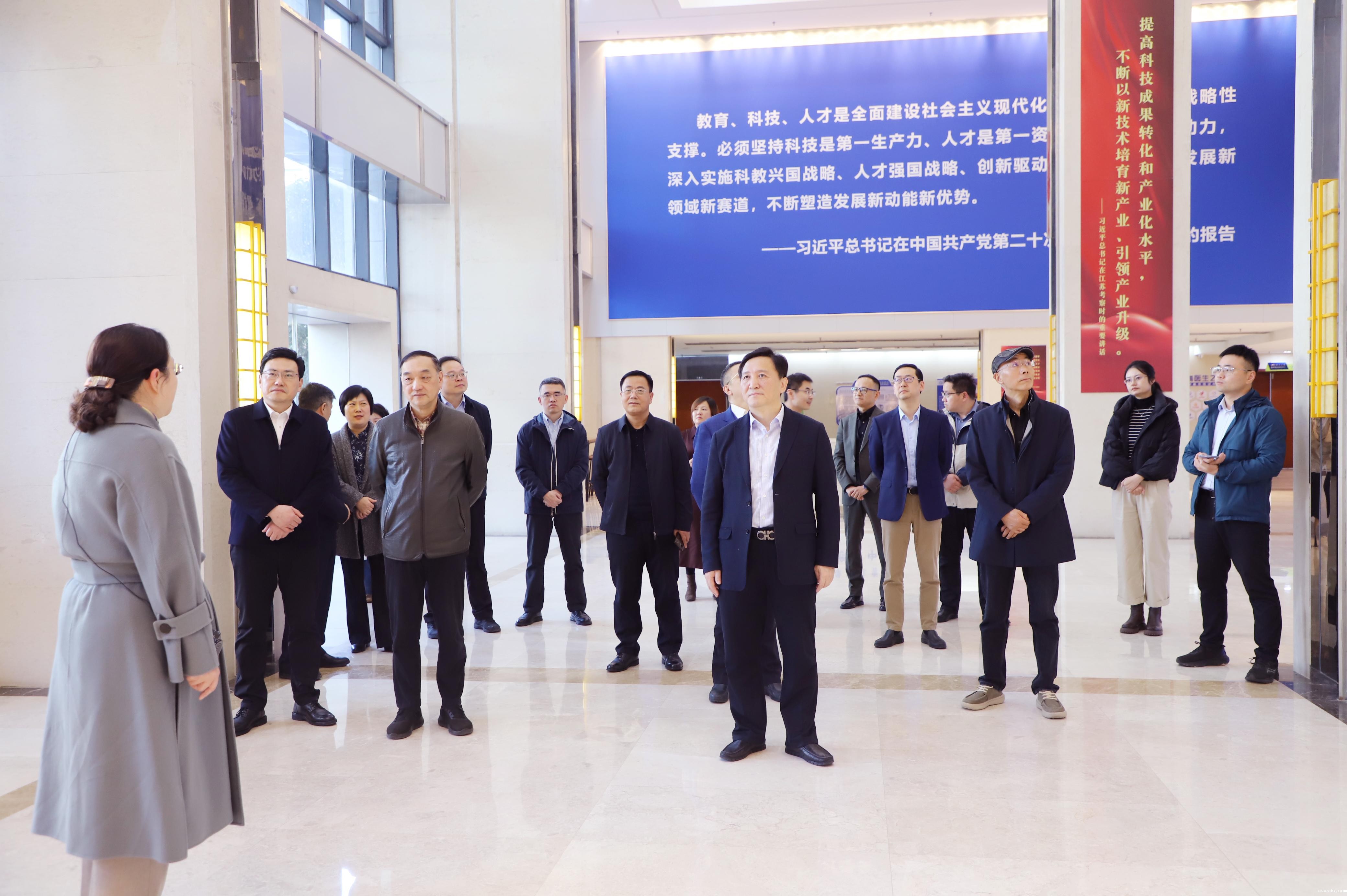 调研组一行首先来到淮海医学科技创新中心,徐医附院副院长王志萍汇报了科创中心的相关工作。作为徐医附院政校院企合作项目,淮海医学科技创新中心建有健康医疗大数据中心、临床研究与医学转化中心、精准医学中心、生物样本中心、科技创新与公共服务中心,省调研组一行实地参观并详细了解其建设情况。随后省调研组一行实地走访了徐医附院淮海路院区门诊、临床科室及院史文化长廊,详细了解医院门诊情况及医疗新技术开展等情况。