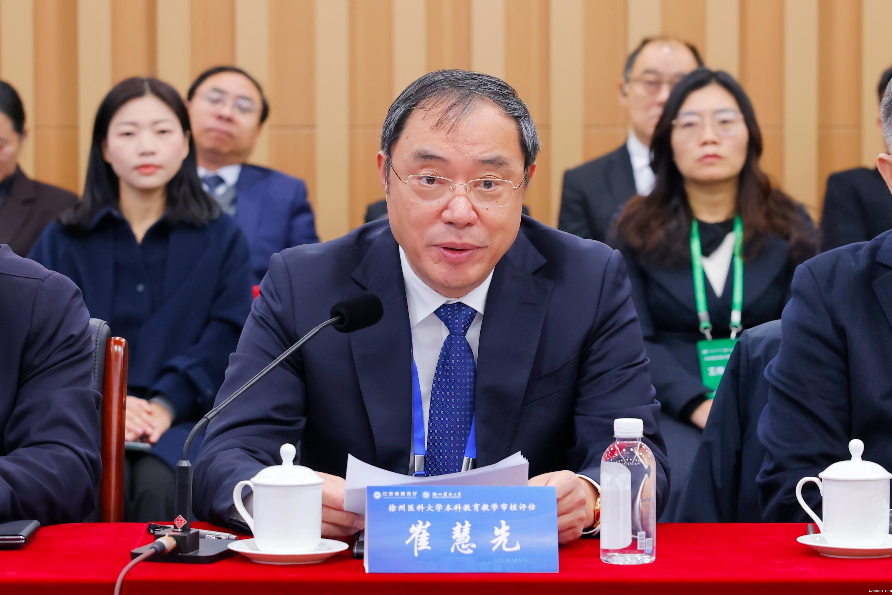 祝木伟代表学校作表态发言。他表示,专家组反馈的评估意见站位高、把脉准、问题实,为学校今后的改革和发展指明了方向,学校党委完全认同、全部认领、诚恳接受。针对专家组反馈的问题,学校将进一步强化政治责任,以思想自觉凝聚整改共识;坚持靶向发力,以责任闭环确保整改实效;突出长效推进,以整改成效赋能高质量发展。学校将继续秉承“培养医德高尚、医技高明的卓越医学人才”的初心使命,奋力谱写“特色鲜明、国内一流的高水平医科大学”建设新篇章,在江苏“挑大梁”的发展大局中勇担重任,在教育强国、健康中国建设的伟大征程中奋勇争先,努力作出徐医新的更大贡献。