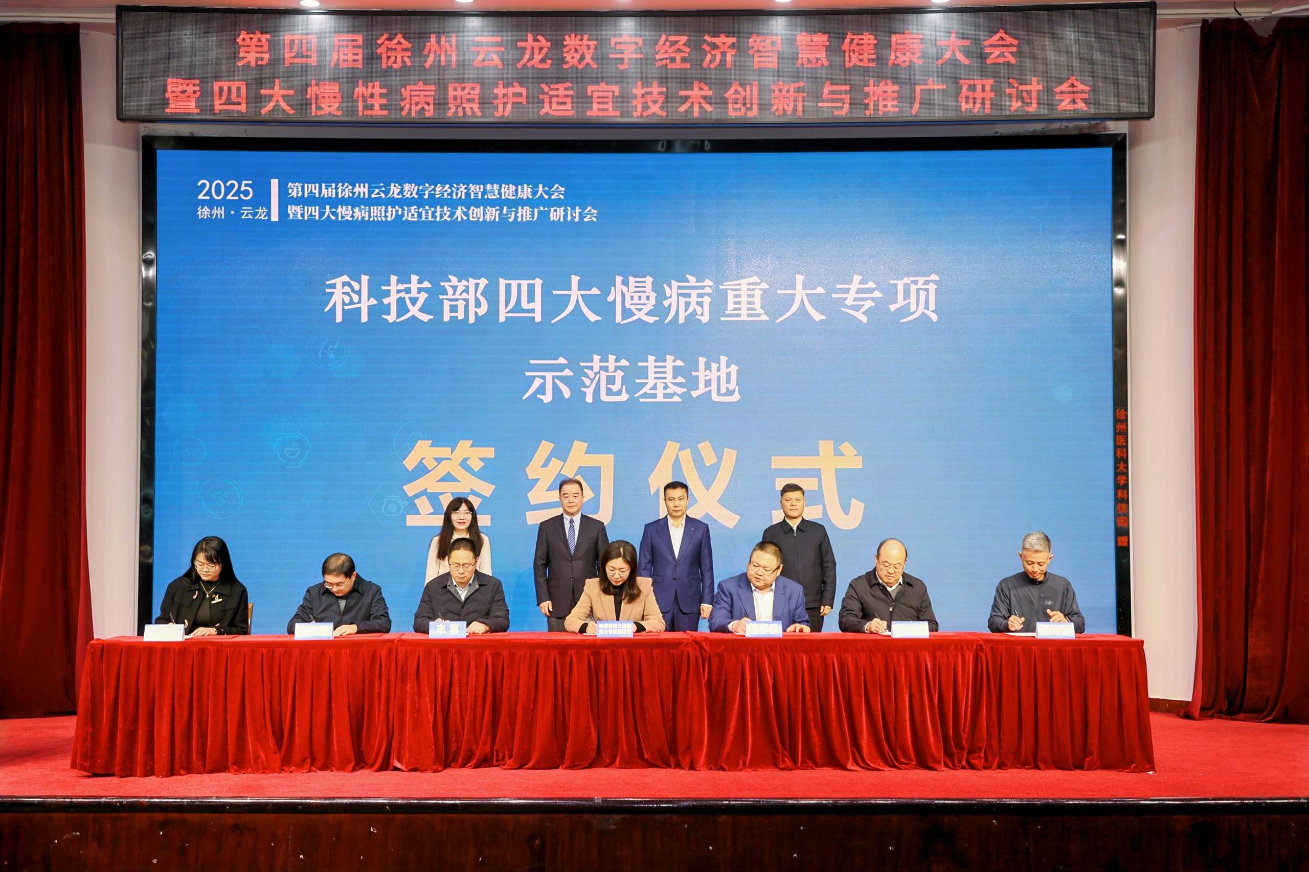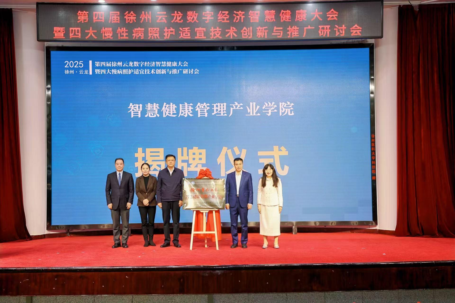 大会举行了国家科技创新2030“四大慢病”重大专项示范基地签约仪式,云龙、丰县、邳州、鄞州、射阳、保亭六地代表与课题组签署合作协议,标志着慢病防控工作从单点突破迈向区域协同新阶段。随后,智慧健康管理产业学院揭牌仪式举行,徐州市委常委、秘书长吴卫东,伟德客户端下载安装手机版党委常委、副校长刘慎军教授等领导共同揭牌。吴卫东在总结讲话中表示,徐州市将持续优化政策服务环境,将徐州打造为慢病照护适宜技术的创新策源地,为健康中国贡献徐州智慧。