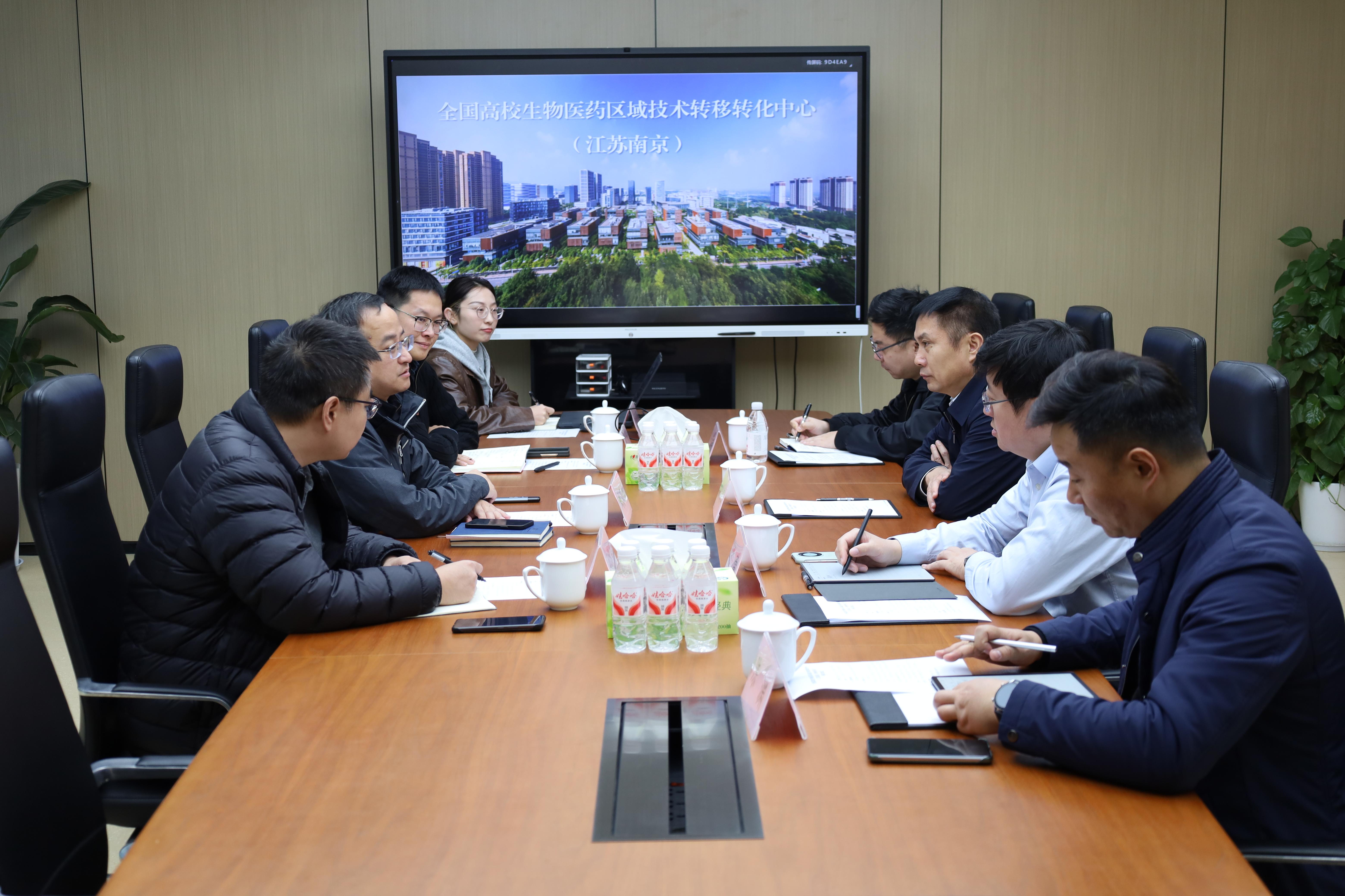 12月11日,我校党委常委、副校长刘慎军带队赴全国高校生物医药区域技术转移转化中心(江苏南京)考察交流并与常务副主任阚苏立座谈,校资产公司总经理轩萱及相关人员参加活动。