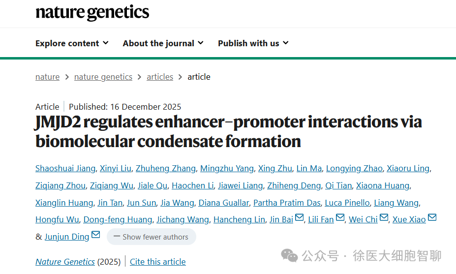 增强子-启动子(E-P)互作是细胞命运决定过程中基因转录调控的关键环节,但其背后的介导调控机制尚未被完全阐明。12月16日,中山大学中山医学院的丁俊军教授和伟德客户端下载安装手机版白津教授团队在国际权威期刊《Nature Genetics》(影响因子:29.0)发表题为“JMJD2 regulates enhancer–promoter interactions via biomolecular condensate formation”的研究论文,为该领域的研究提供了重要突破。