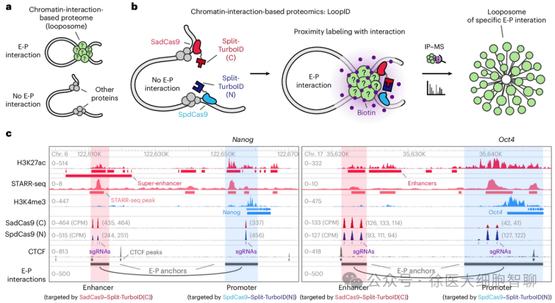 本研究的核心创新点之一是开发了基于染色质互作的新型蛋白质组学技术——LoopID技术。该技术可精准表征特定E-P互作锚定位点的结合蛋白复合物(looposome),为解析E-P互作的分子调控网络提供了强有力的工具。研究发现,组蛋白去甲基化酶JMJD2是looposome复合物的核心组成成分,其能够通过形成生物分子凝聚体,以非催化依赖的方式调控E-P互作的建立与维持,同时调控looposome复合物的组装过程。这一发现揭示了JMJD2在染色质结构调控中的非经典功能,突破了对组蛋白去甲基化酶传统功能的认知。
