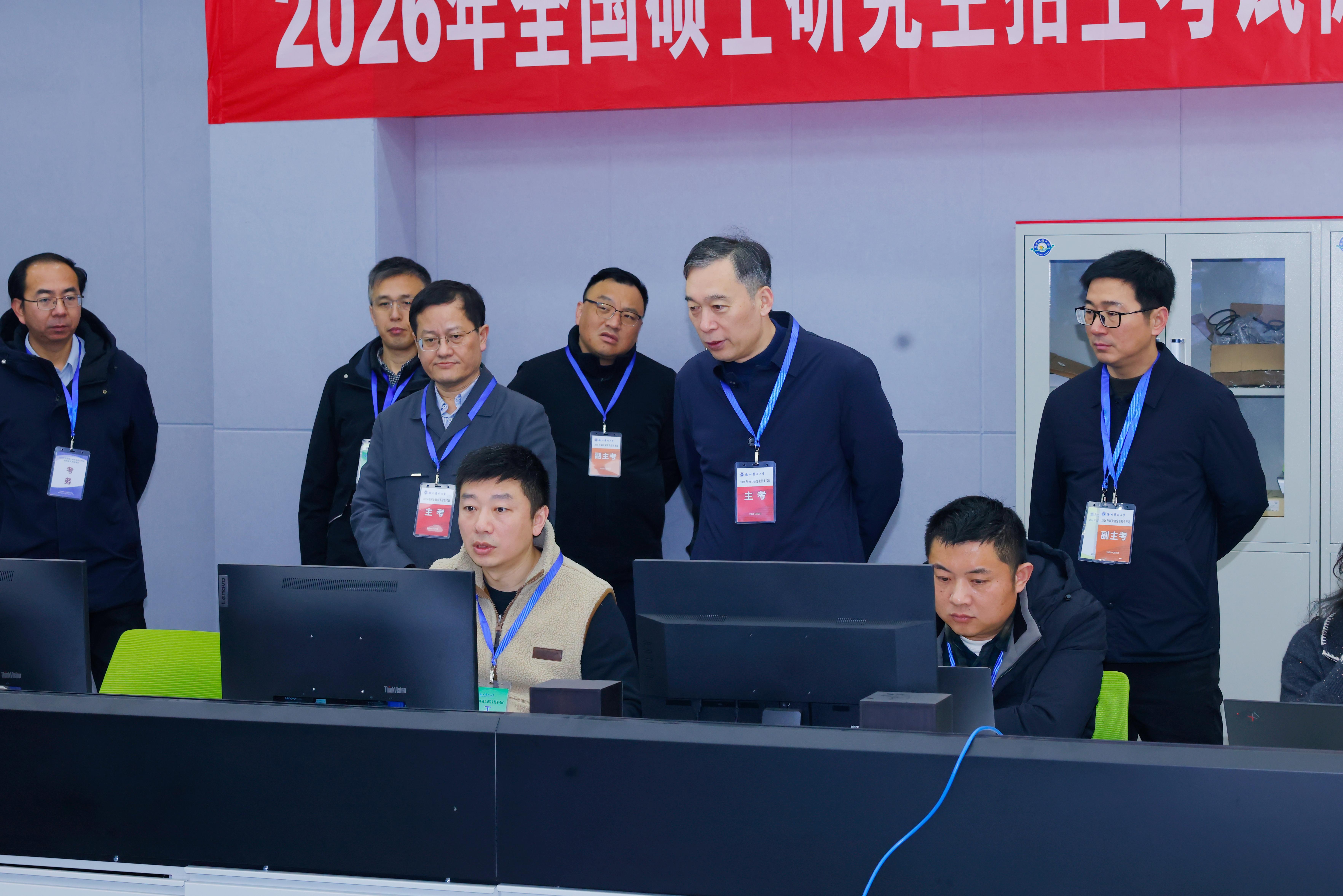 考试期间,校党委书记祝木伟、副校长曹君利率队检查此次考试各项准备工作。校领导们走进考务中心、视频监控中心、保密室,对坚守岗位的工作人员表示感谢,要求各部门要充分认识硕士研究生招生考试的重要意义,提升关键环节落实和突发事件应急处置水平,注重提高服务意识,营造良好的考区氛围。在确保安全性、科学性、公平性的基础上,统筹兼顾、精准施策、严格管理,以高标准、高质量实现“平安研考”目标任务。
