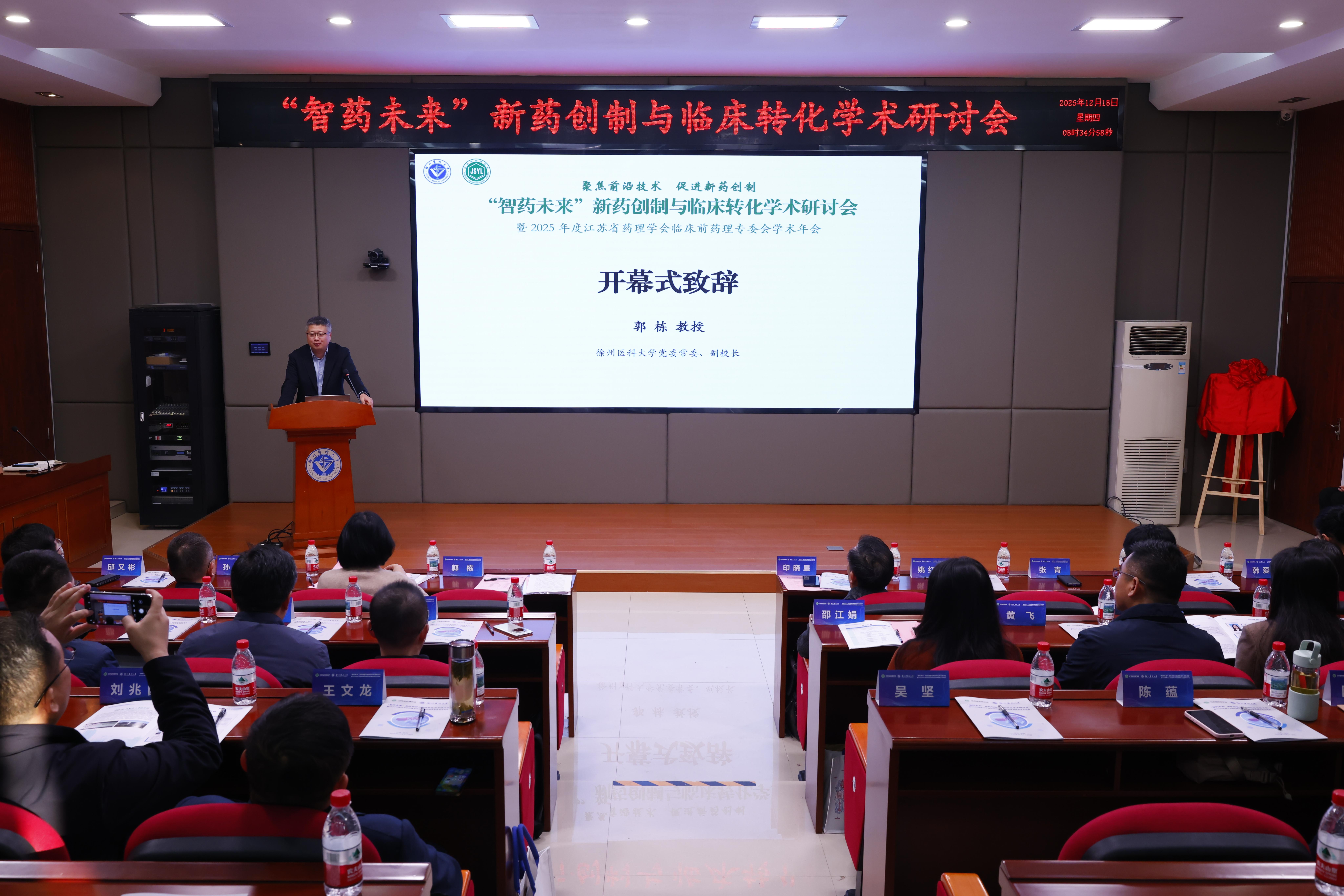 12月18日,“智药未来”新药创制与临床转化学术研讨会暨2025年度江苏省药理学会临床前药理专委会学术年会在我校举办。本次会议由江苏省药理学会、伟德客户端下载安装手机版主办,伟德客户端下载安装手机版药学院、江苏省药理学会临床前药理专委会承办,江苏恩华药业股份有限公司、华越健康产业集团协办。会议围绕“聚焦前沿技术、促进新药创制”主题,倡导以国家重大需求和国际科学前沿为导向,致力于将前沿技术应用于新药创制,促进科研成果转化,解决重大医学难题,提高人们的生活质量和健康水平。会议开幕式由江苏省药理学会临床前药理专委会主任委员、伟德客户端下载安装手机版药学院院长周雪妍主持。
