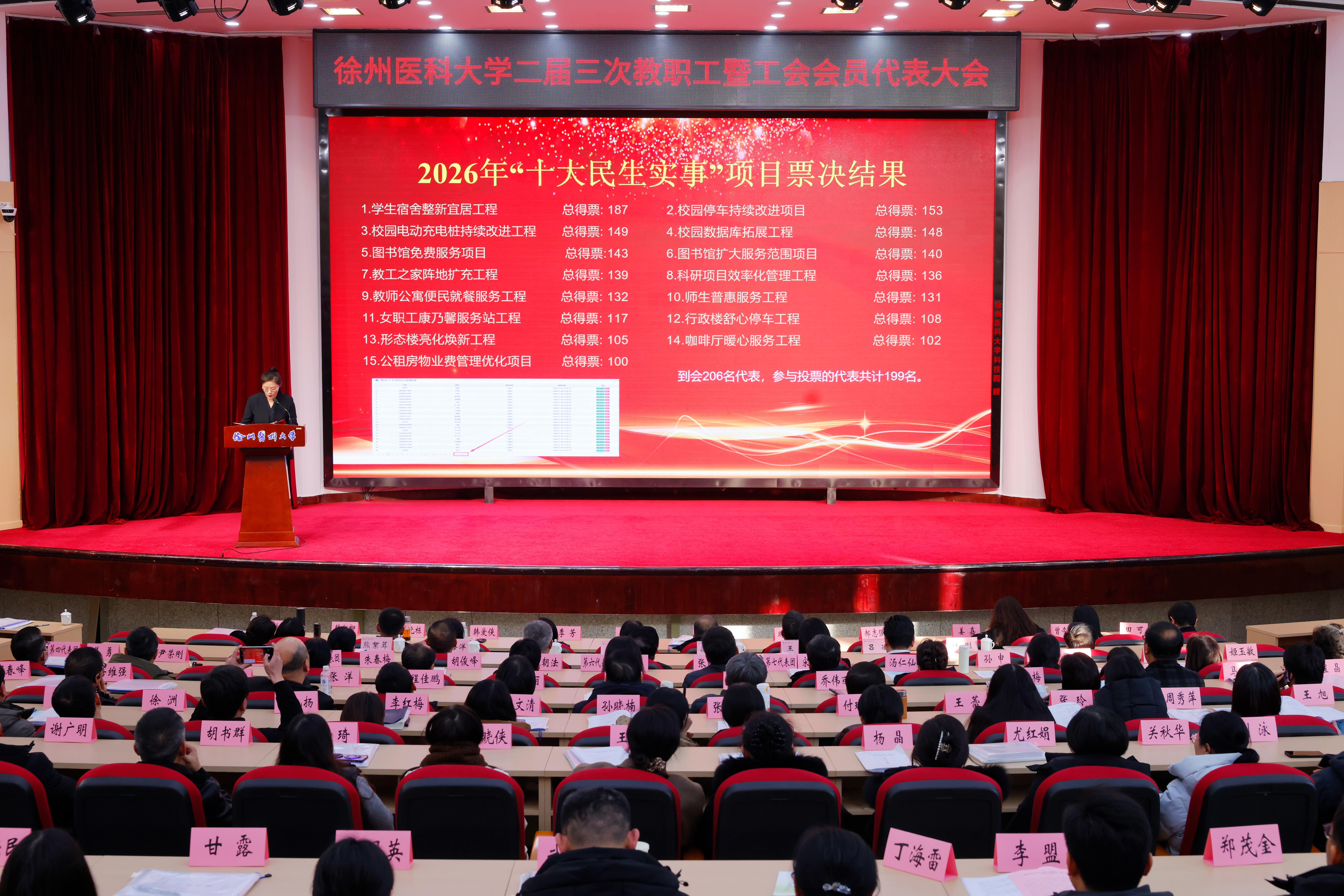 大会听取审议了《凝心聚力谋发展 深化改革谱新篇——在伟德客户端下载安装手机版二届三次教职工暨工会会员代表大会上的报告》《伟德客户端下载安装手机版“十五五”事业发展规划(草案)》及各专项规划(草案)、《伟德客户端下载安装手机版绩效工资实施办法(修订)(草案)》《学校财务报告》《教代会执委会及工会伟德足球指数投注》《工会经费审查委员会伟德足球指数投注》,书面审议了《提案伟德足球指数投注》,票决通过2026年“十大民生实事”项目,审议通过《大会决议(草案)》,圆满完成各项议程。