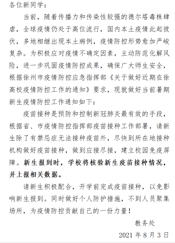 重要通知---关于做好伟德客户端下载安装手机版2021级本科新生接种疫苗通知